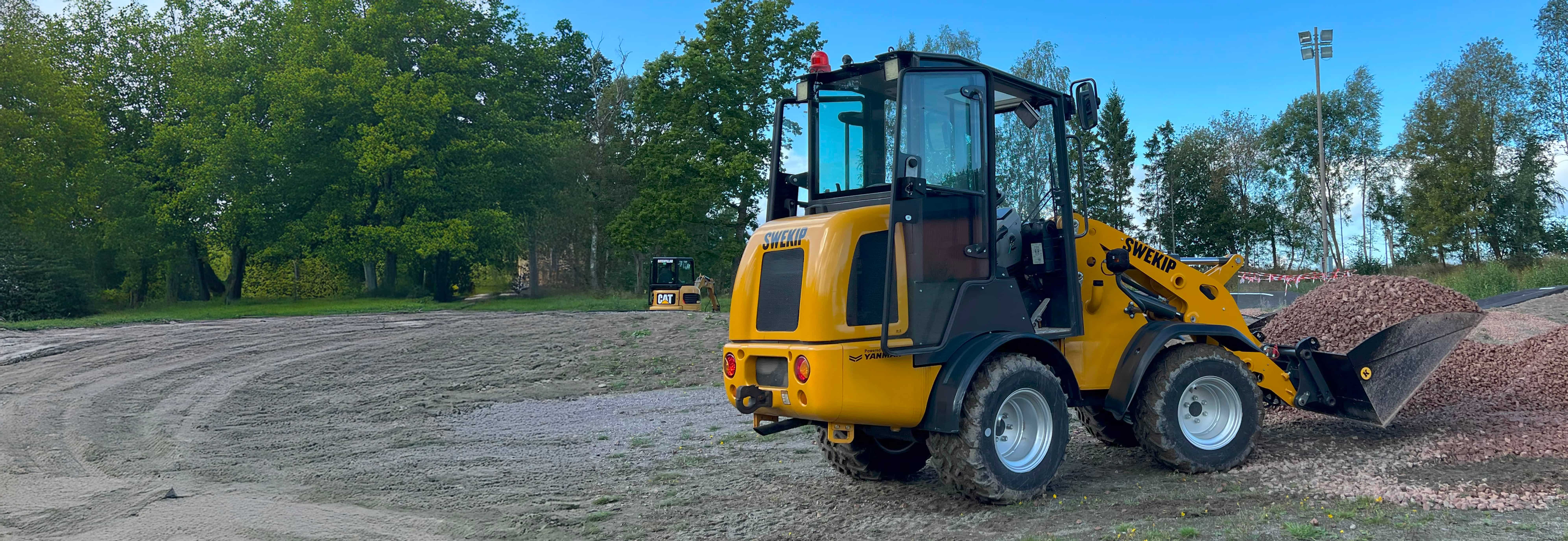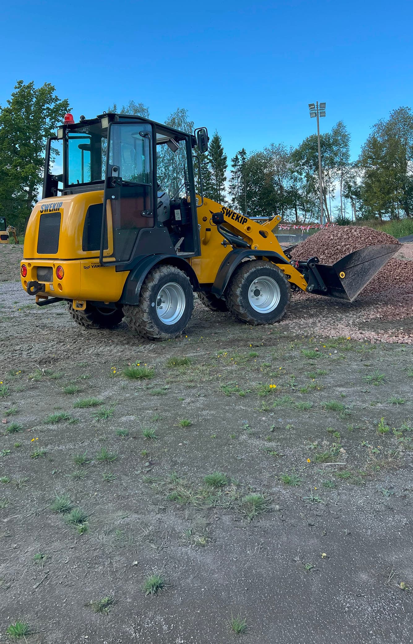 Men så är inte längre fallet. Sedan drygt ett år tillbaka rullar nämligen en hjullastare från Swekip omkring på gården.